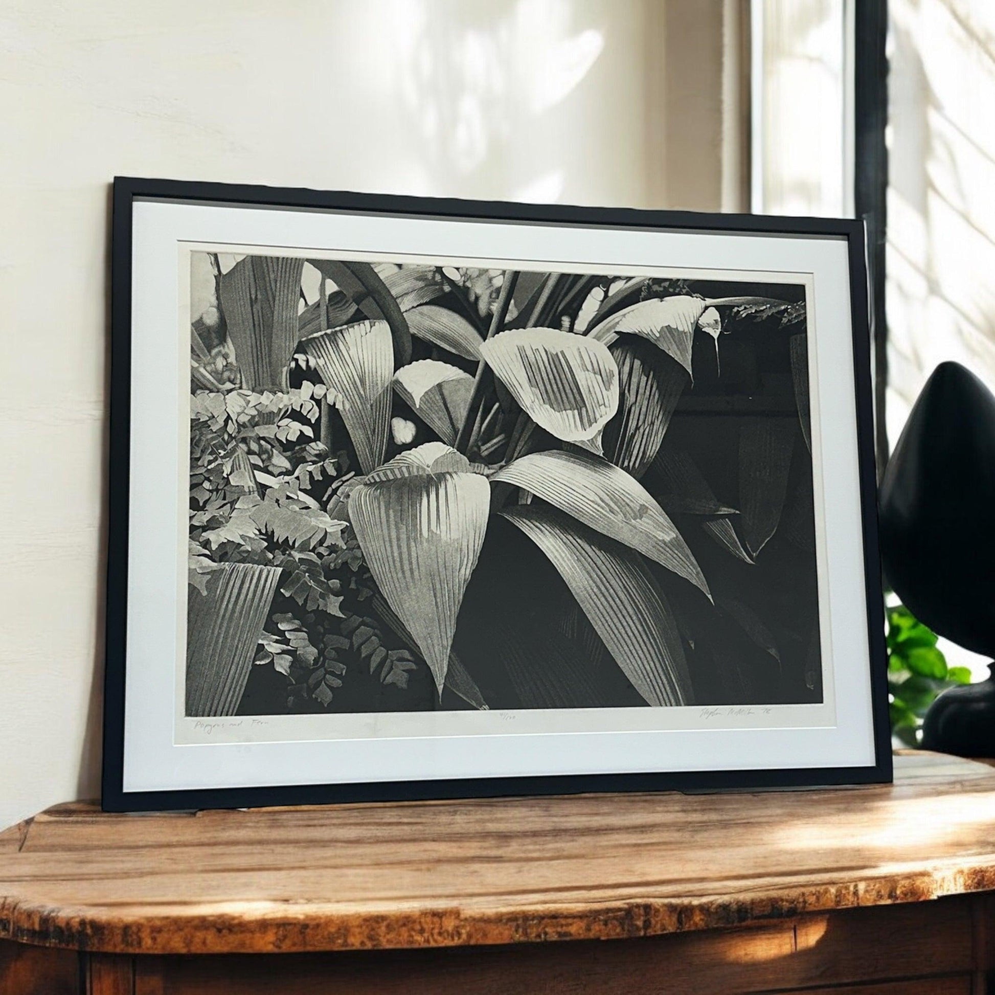 "Expertly crafted, this lithograph from Stephen McMillan captures the beauty of 1978 Gardens. Number 1369 is presented in a custom frame measuring 26 x 34 inches, adding a touch of elegance to any space."