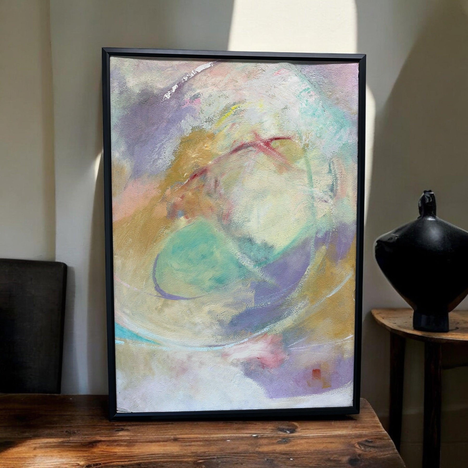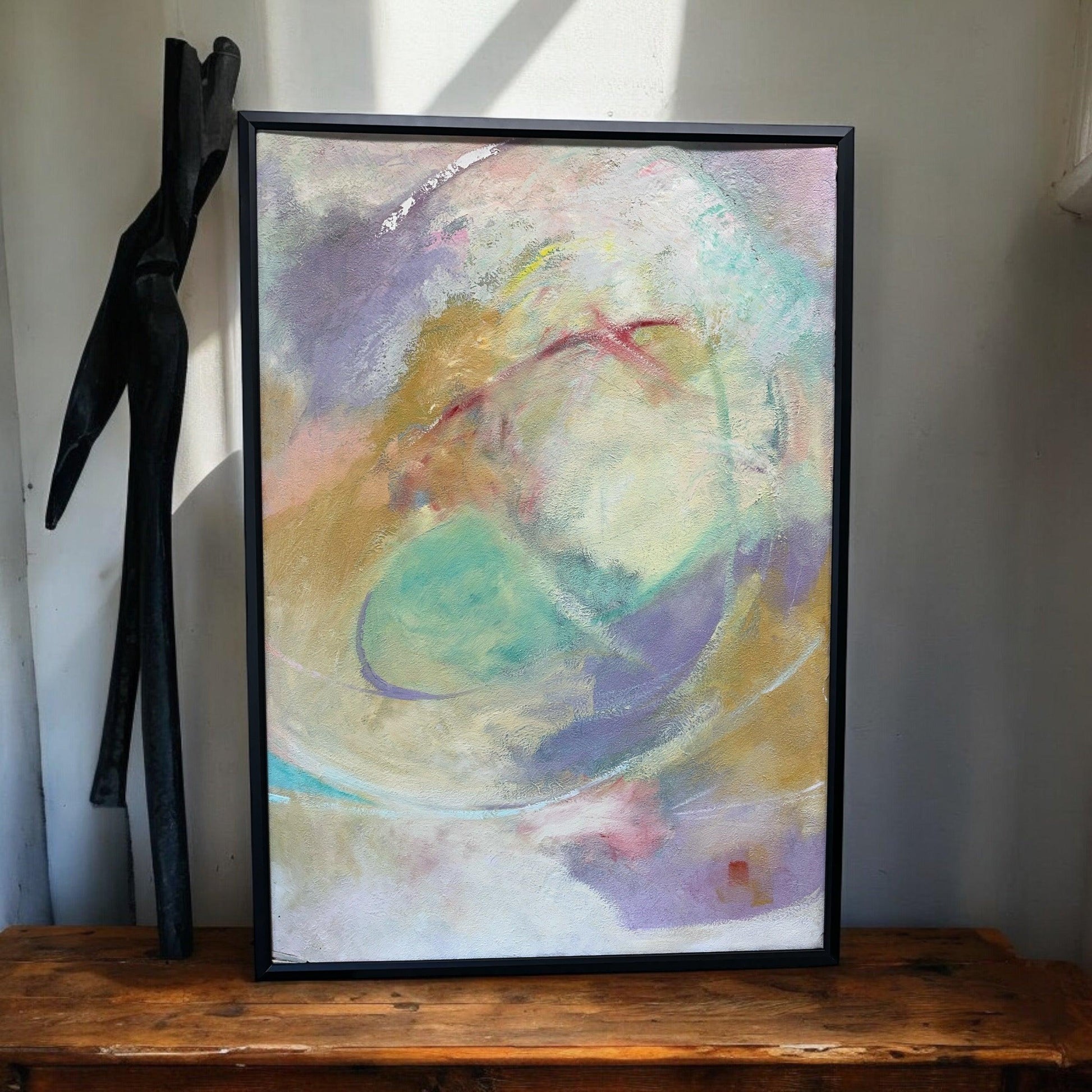 Expertly crafted, this Abstract Mixed Media piece is a true testament to creativity. Each piece is uniquely created on board and framed to perfection, measuring 32 x 45 inches. Enhance your space with this stunning piece of art.