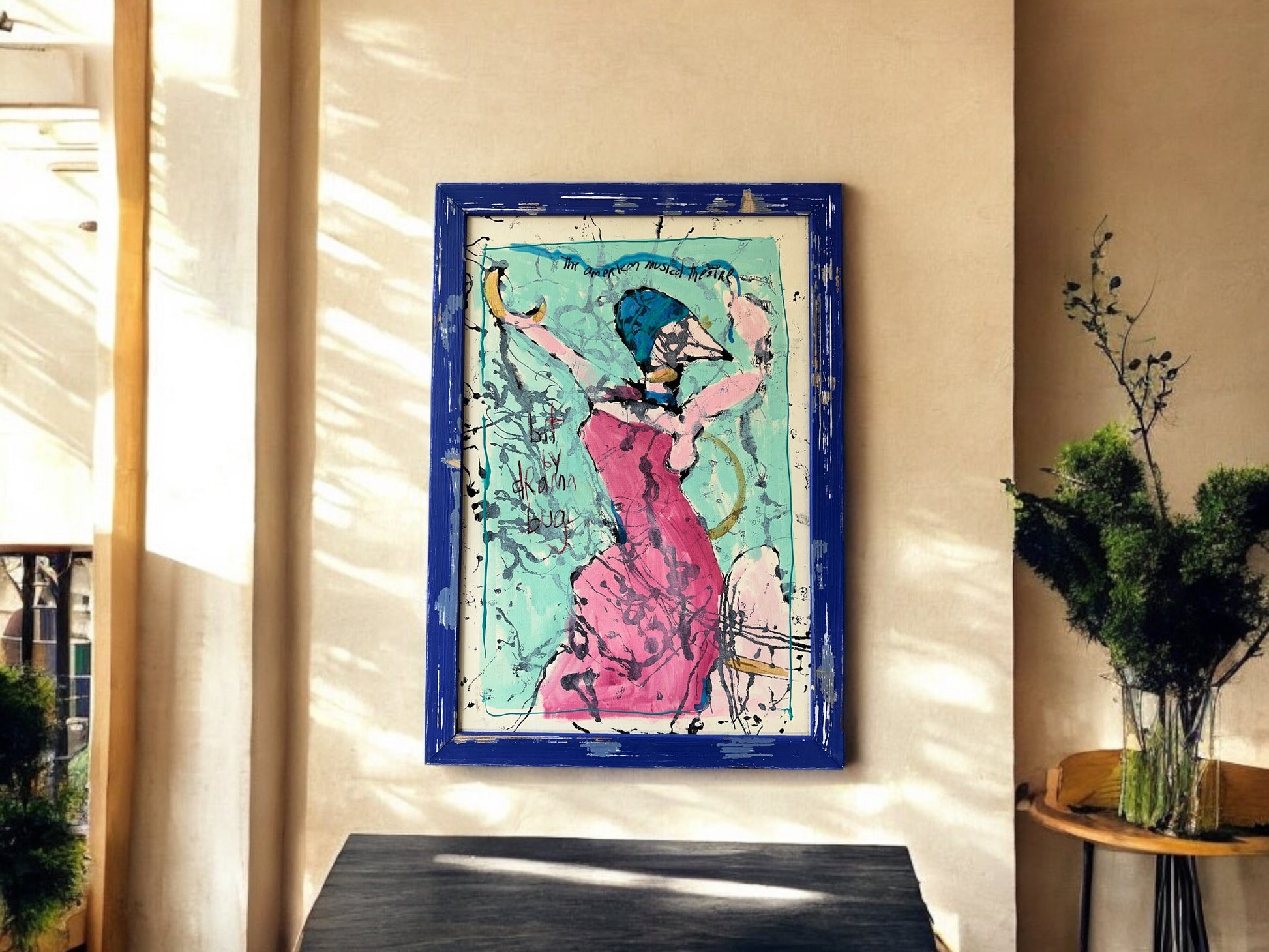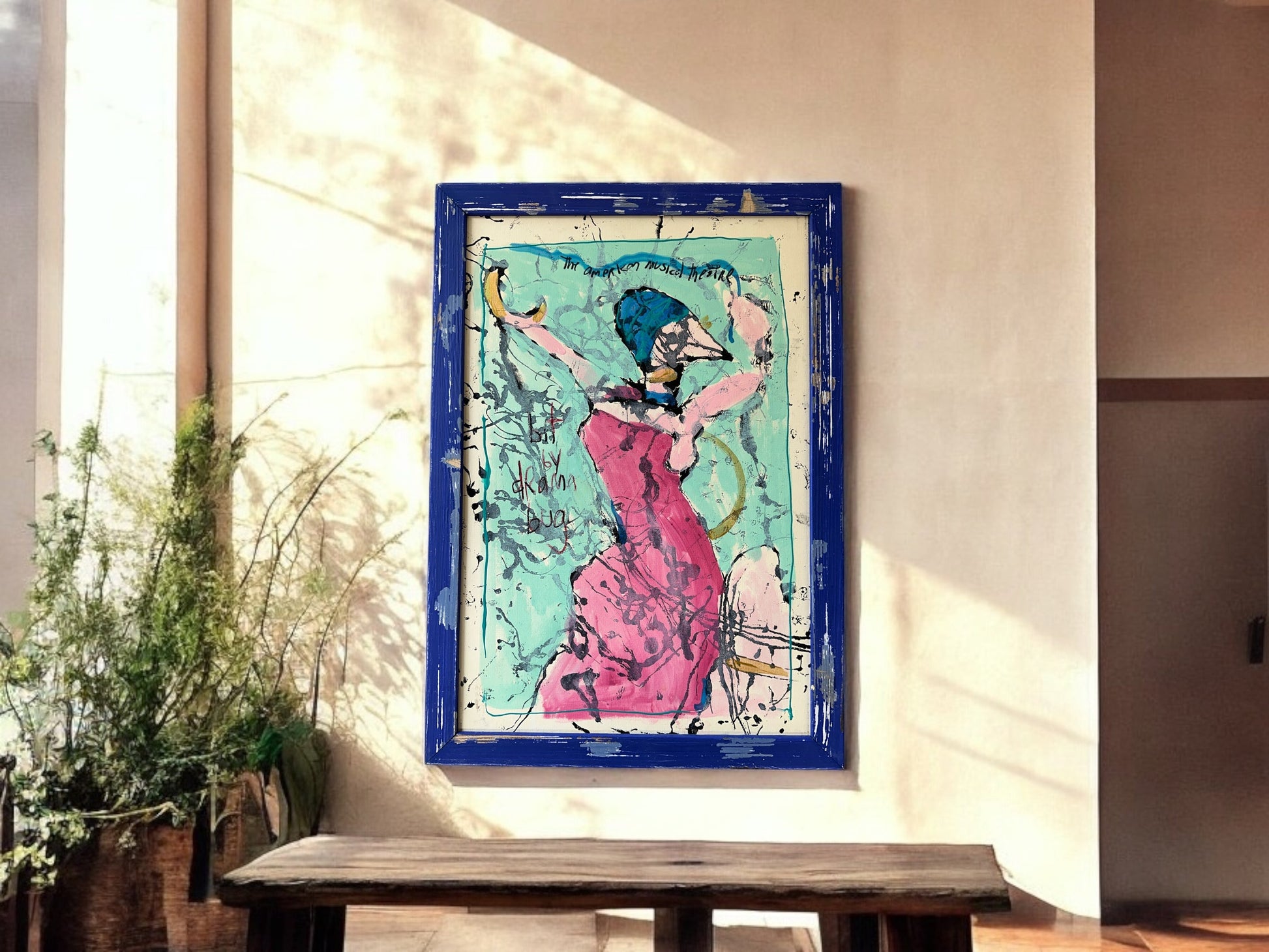 This mixed media artwork by Jane Gilday, titled "Bit by Drama Bug", features a custom distressed frame and measures 14 x 19 1/2 inches. Numbered 1225, it showcases the artist's mastery of combining different materials to create a unique piece. Enhance your collection with this one-of-a-kind work of art.