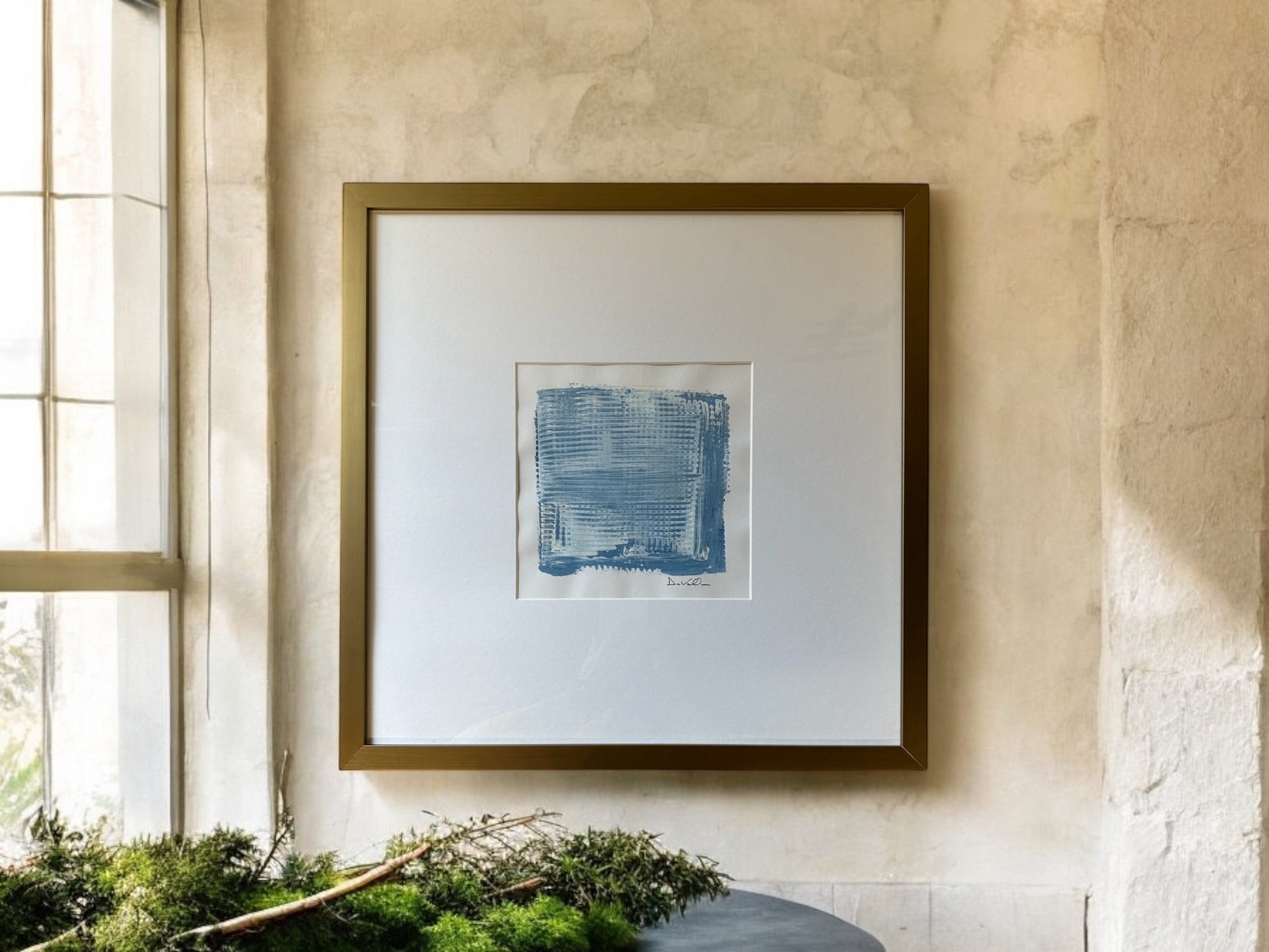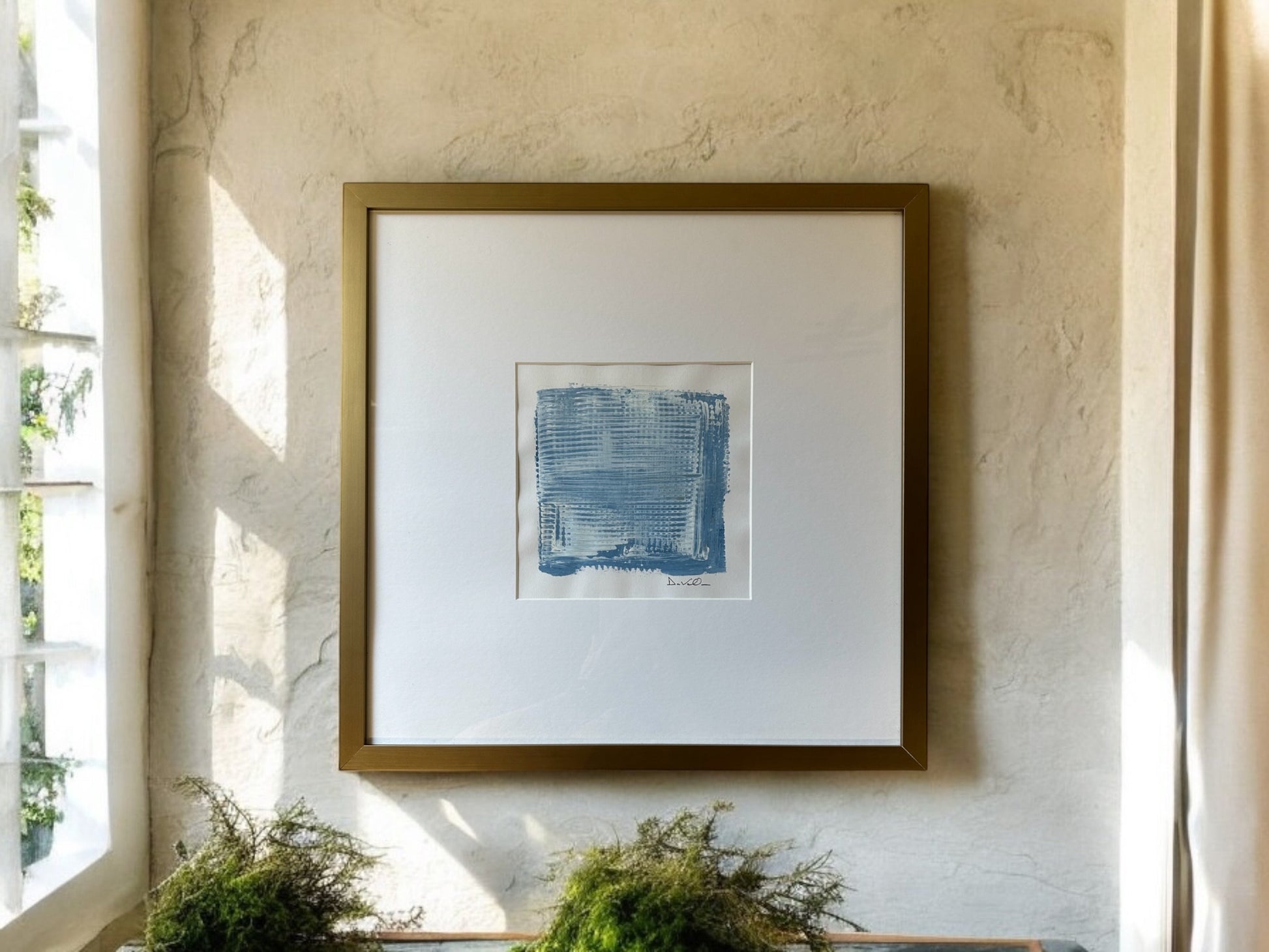 This stunning Blue Patch - DVO - #1173 piece features an acrylic on paper design, housed in a custom gold frame measuring 19 x 19". With its vivid blue color and intricate details, this art number 1173 is sure to make a statement in any space. Elevate your home or office with this unique and expertly crafted piece.