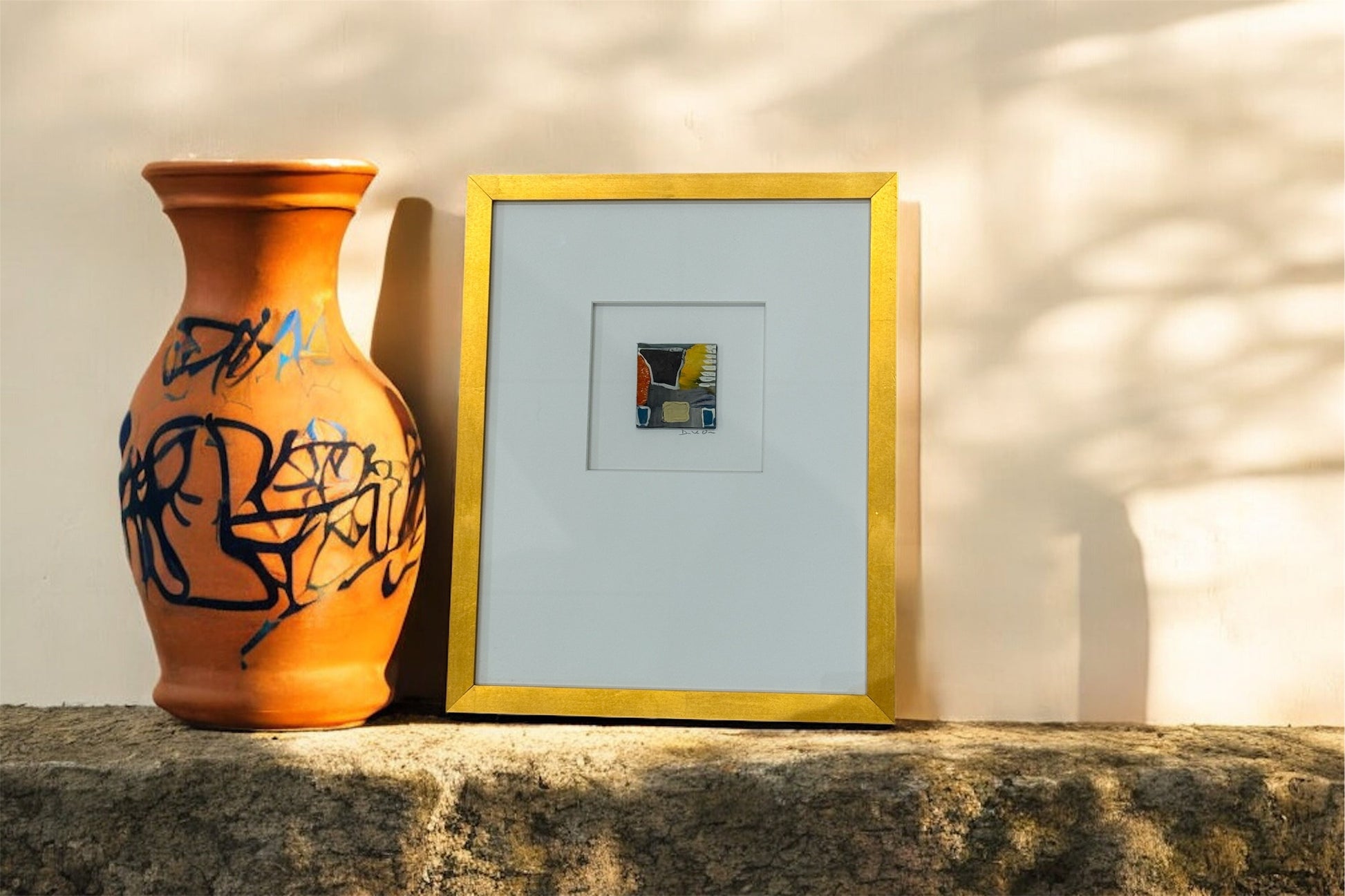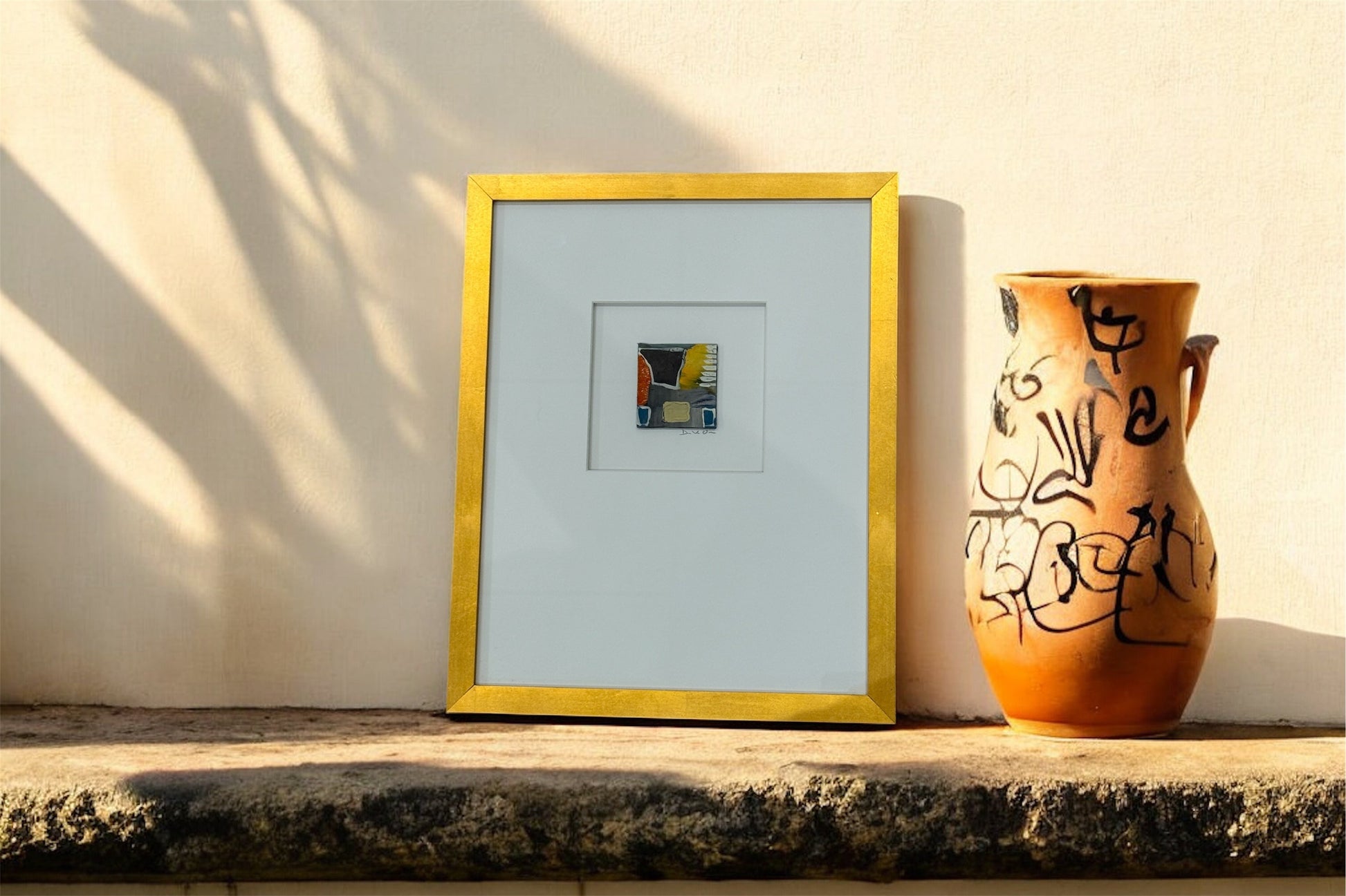 Featuring the exquisite Brume series, by DVO - #1460 is a masterpiece of acrylic on panel artwork. Float mounted on map board and encased in a luxurious gold leaf frame, this 12 x 15" piece is a must-have for any art lover. Elevate your space with this captivating painting.