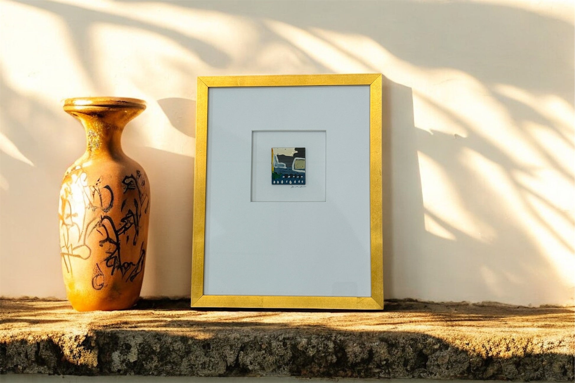 Featuring the exquisite Brume series, by DVO - #1461 is a masterpiece of acrylic on panel artwork. Float mounted on map board and encased in a luxurious gold leaf frame, this 12 x 15" piece is a must-have for any art lover. Elevate your space with this captivating painting.