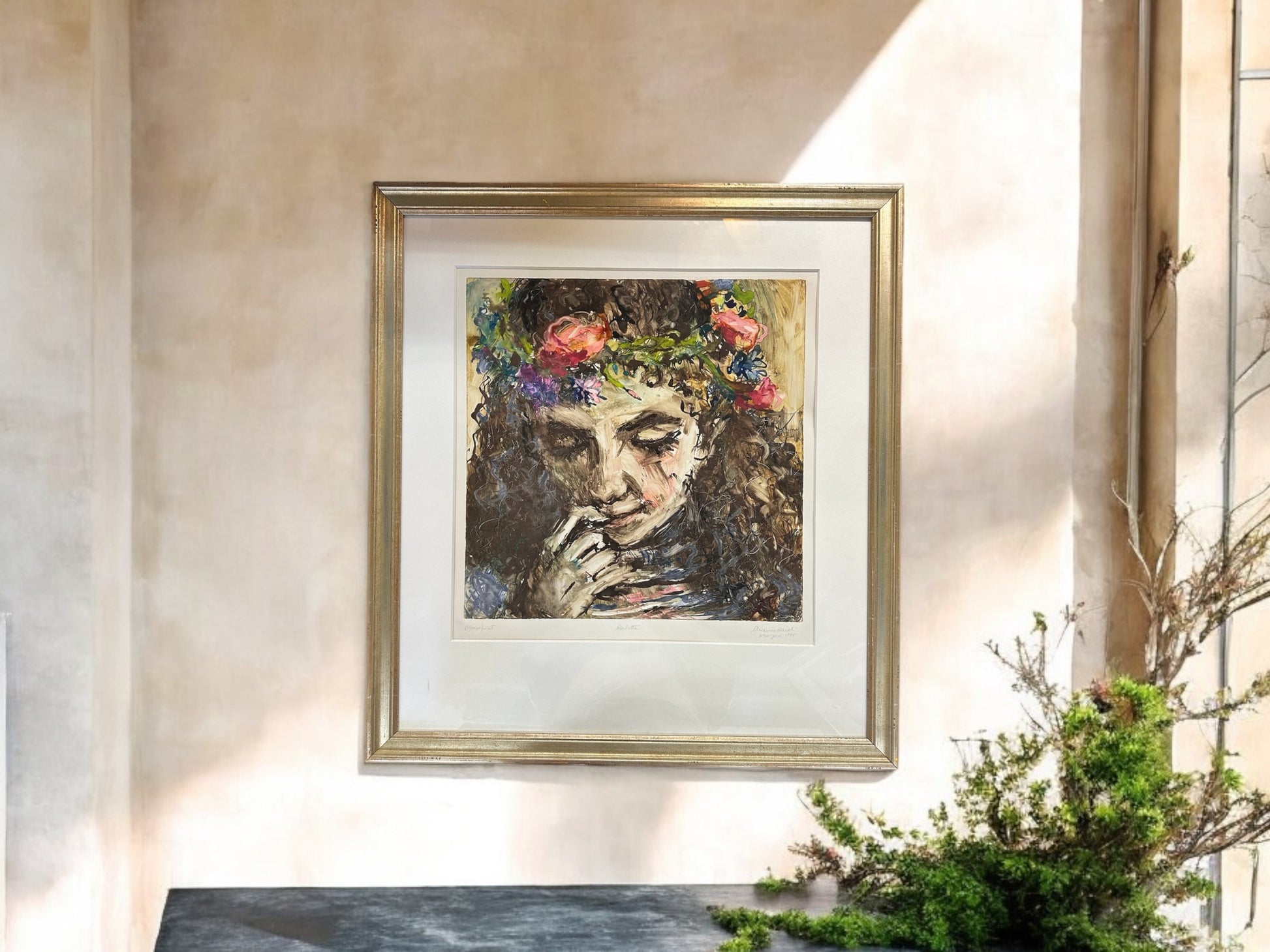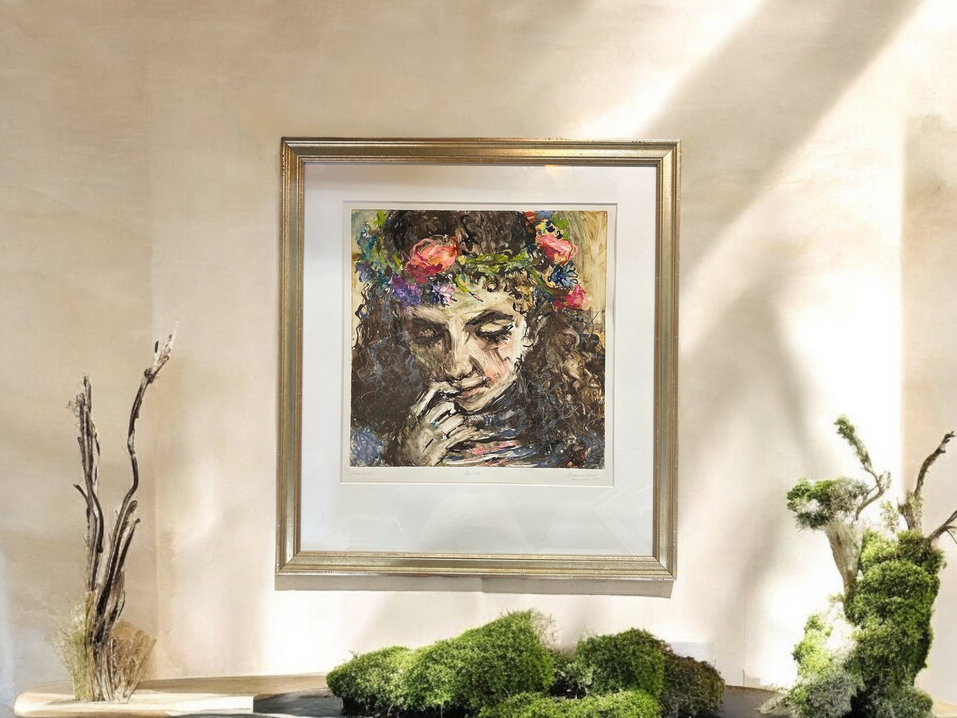 This custom framed mono print of Charlotte number 1249 features a unique design and measures 27 1/2 x 30 inches. The custom mat and wood frame add a sophisticated touch to any home or office decor. Bring a personalized touch to your space with this one-of-a-kind piece.