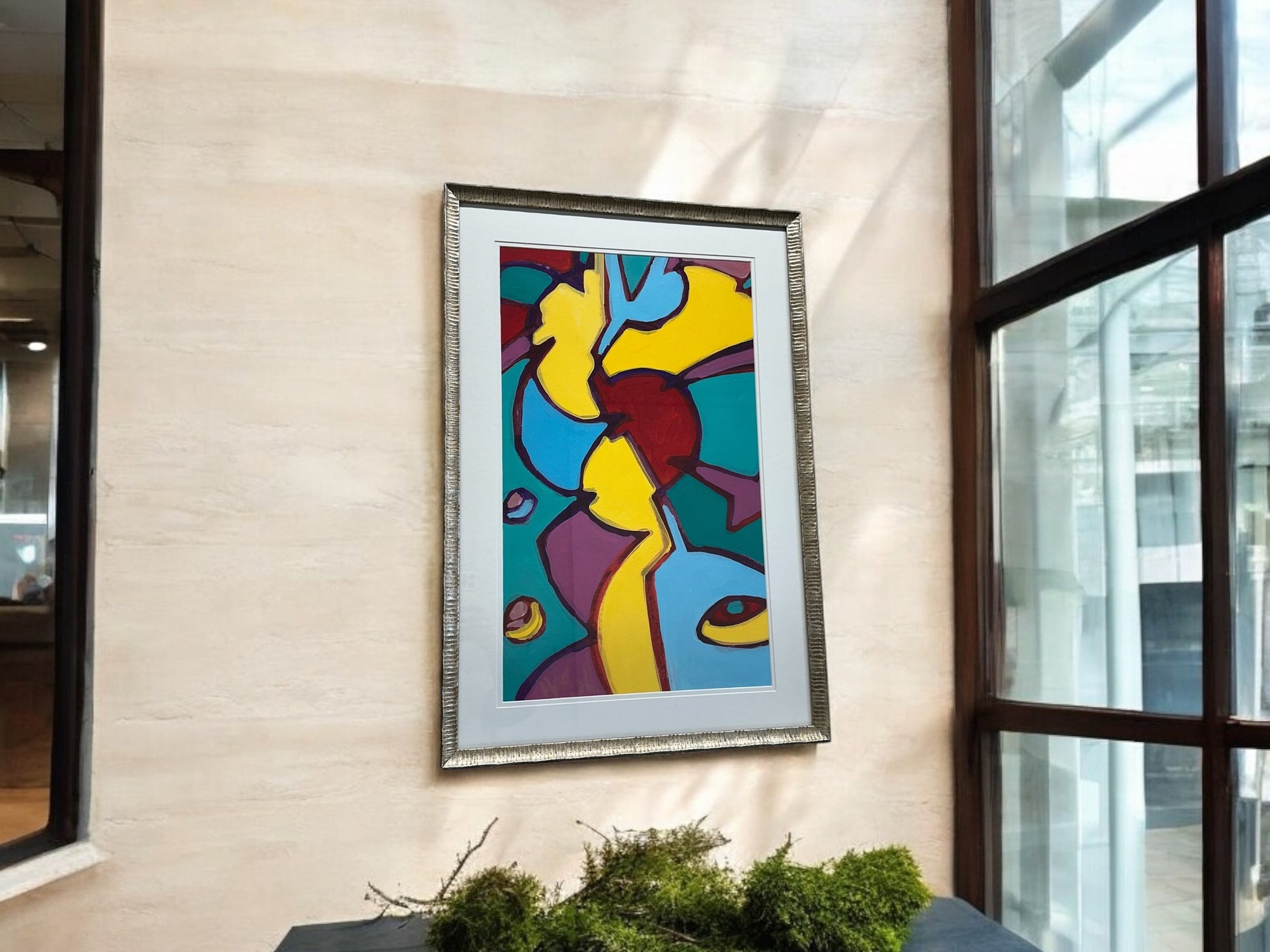 Expertly crafted and unique, Chromatic Harmony - Mixed Media - #1260 is a stunning mixed media piece on paper, beautifully displayed in a 21 x 31" custom frame. With its dynamic use of colors and texture, this piece is sure to add a vibrant touch to any space.