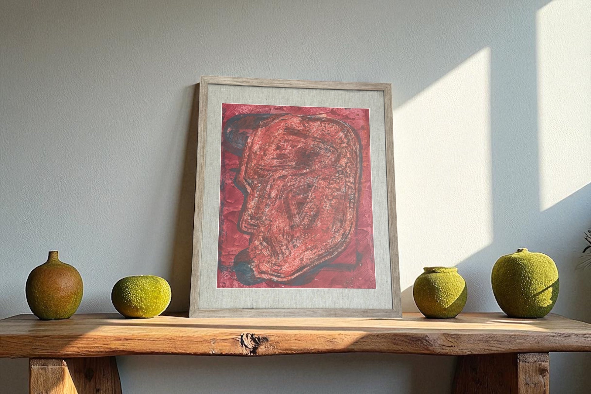 “Contour,” a captivating mixed media oil painting on paper, was expertly created by Daniel Buckler. Framed in a custom linen mat and wood frame, the painting measures 23.5 x 28.5 inches and is art number 1448.