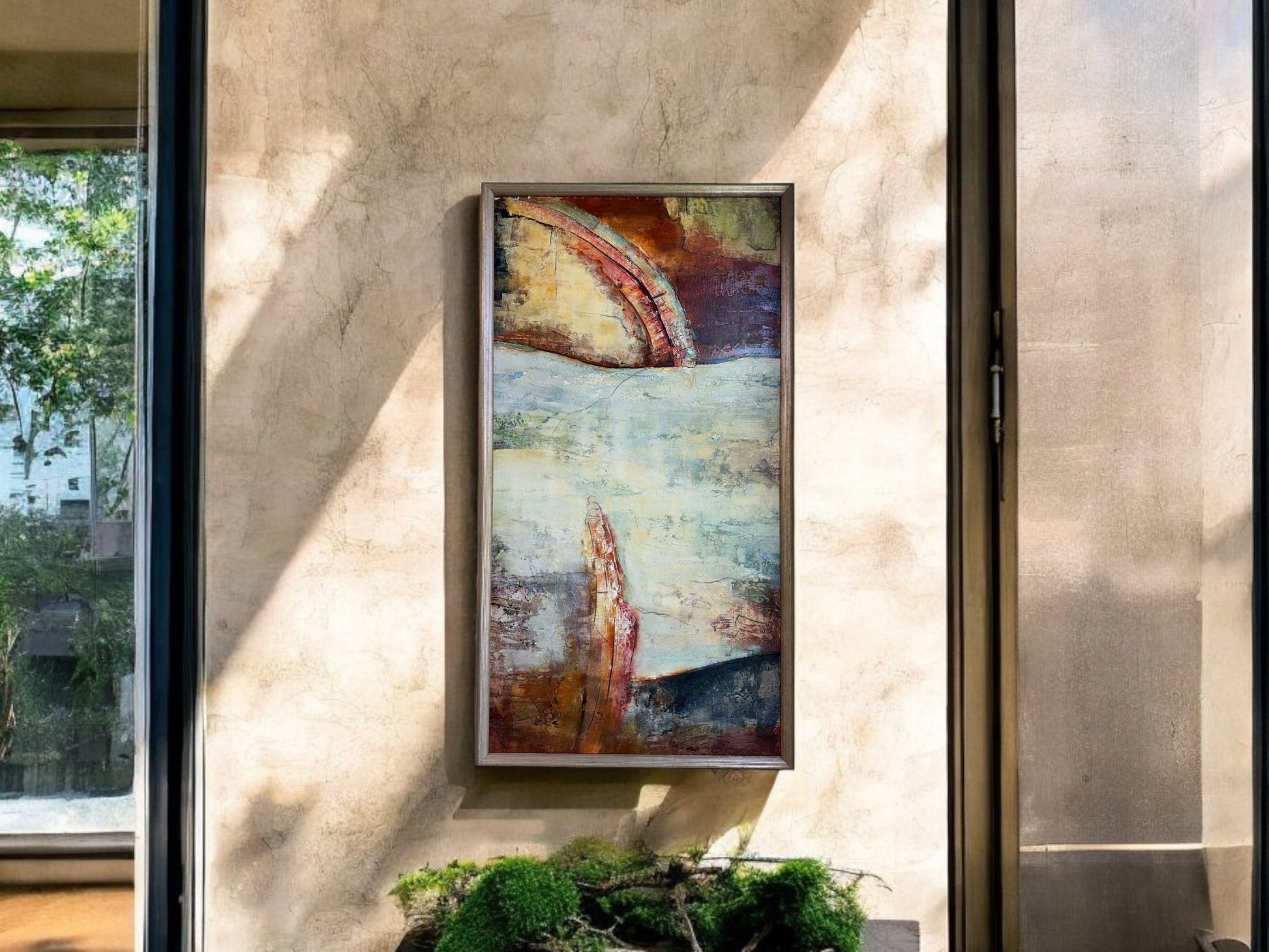 This Creation, #1181 by Nacy NGO, is a stunning piece of art made of oil and mixed media on canvas. Its custom frame measures 33 x 61'', creating a unique and impactful display in any space. Add this art number 1181 to your collection for a touch of sophistication and beauty.