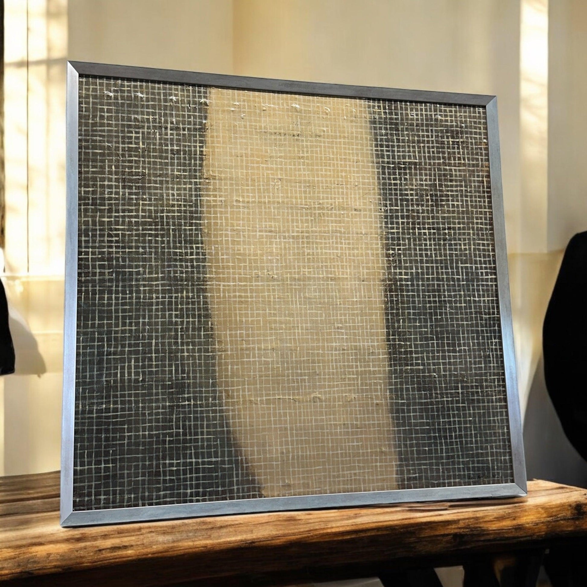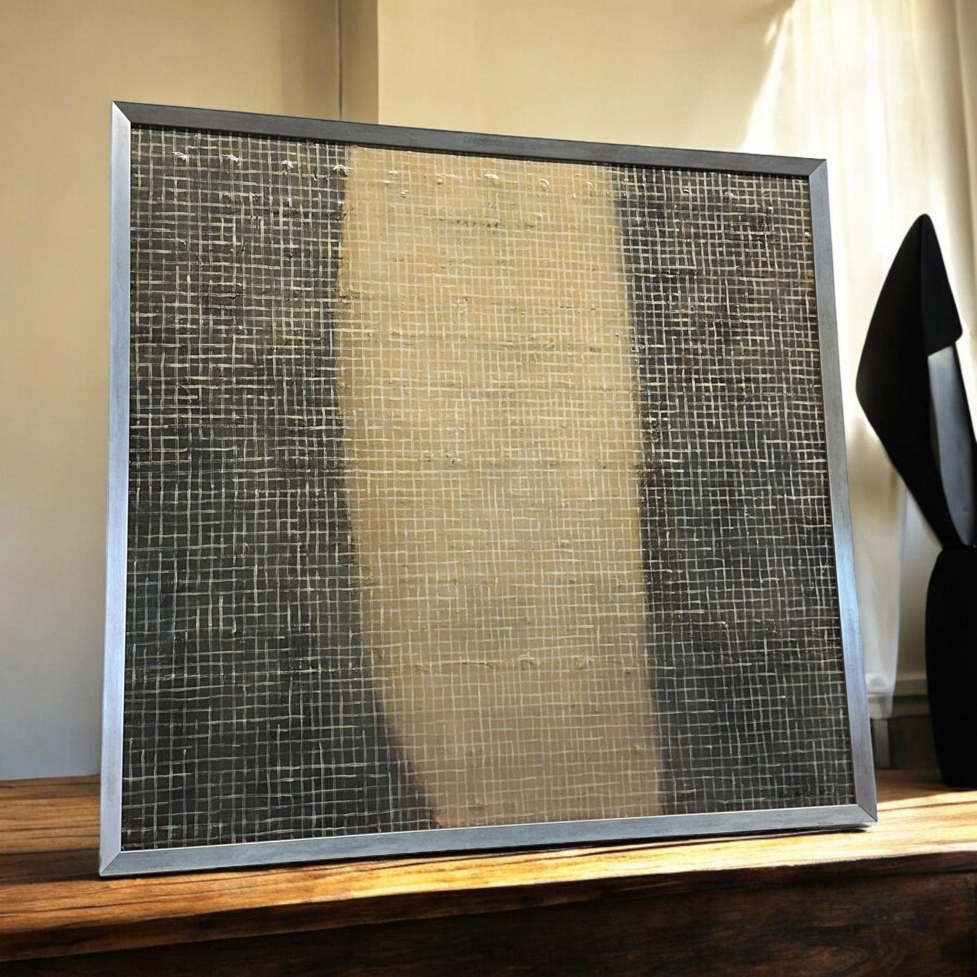This unique piece, Cross Hatching - Mare McClellan - #1368, showcases a cross hatch oil technique on panel, framed in a custom silver bevel frame. Measuring 31 x 33", this exquisite artwork exudes sophistication and elegance. Add a touch of fine art to your space with this stunning piece.