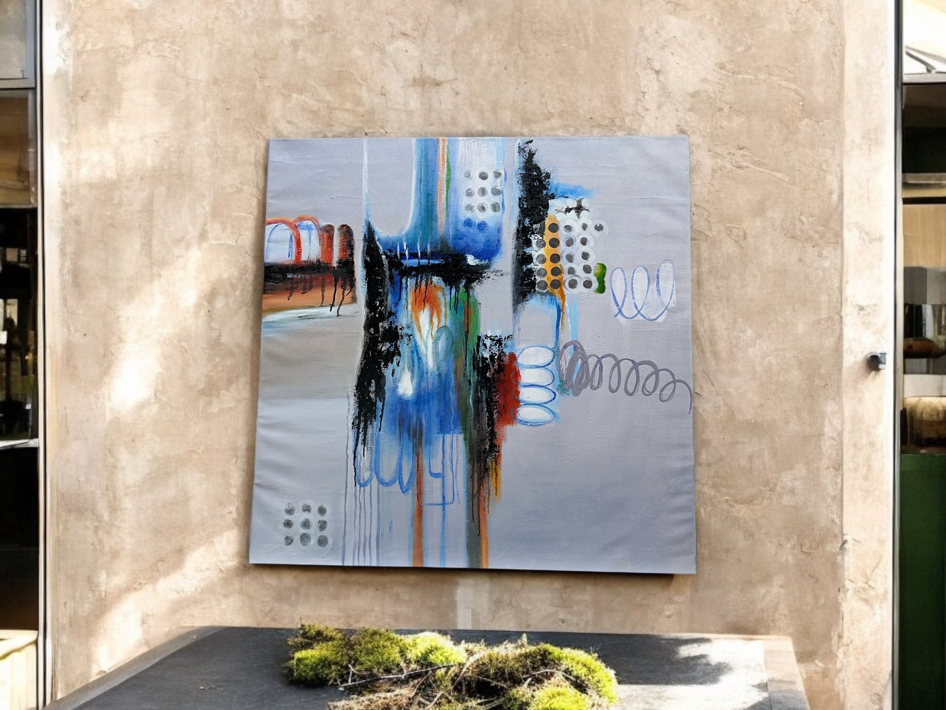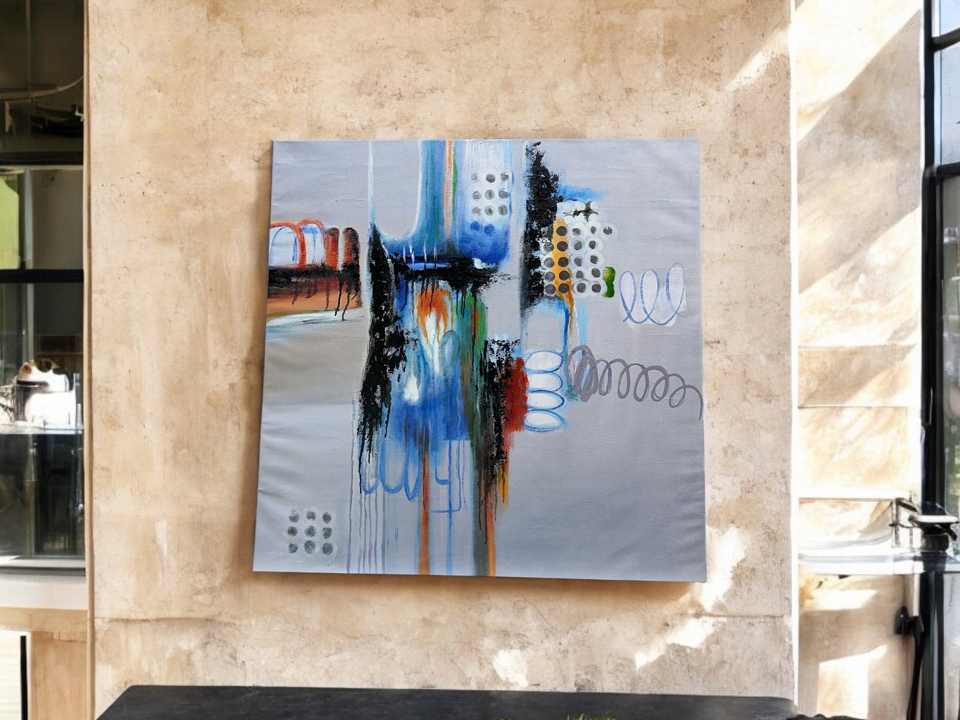 Experience the captivating beauty of the "Elemental Dance" abstract oil on canvas, number 1287. Measuring 36 x 36 inches, this one-of-a-kind piece showcases vibrant colors and dynamic shapes, adding a touch of sophistication to any space. Elevate your art collection today.