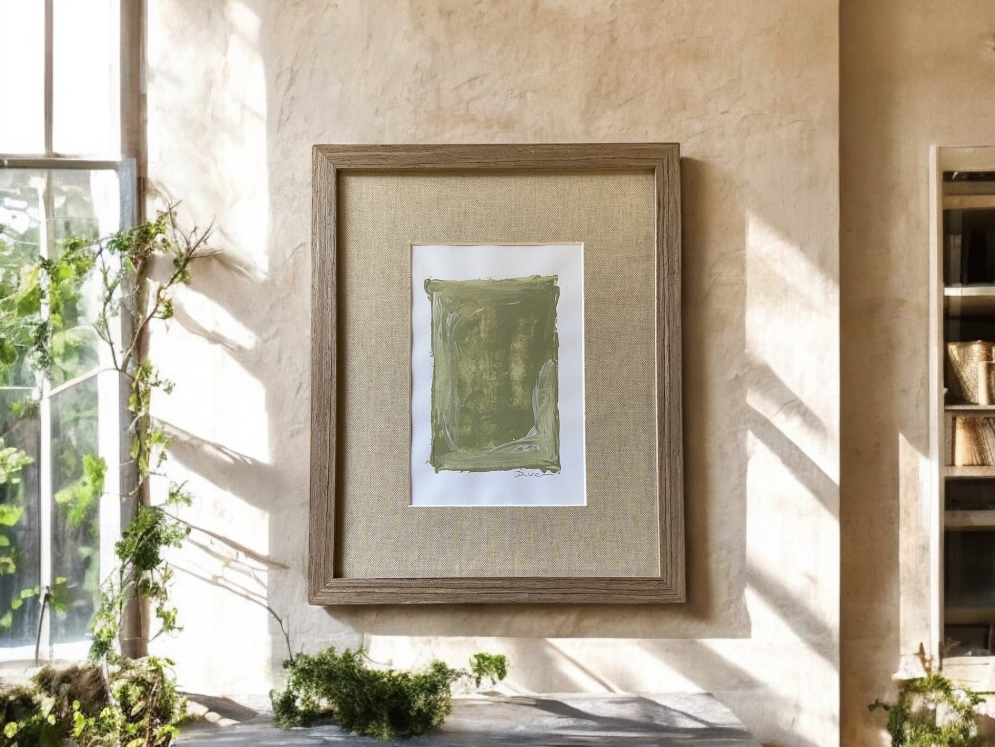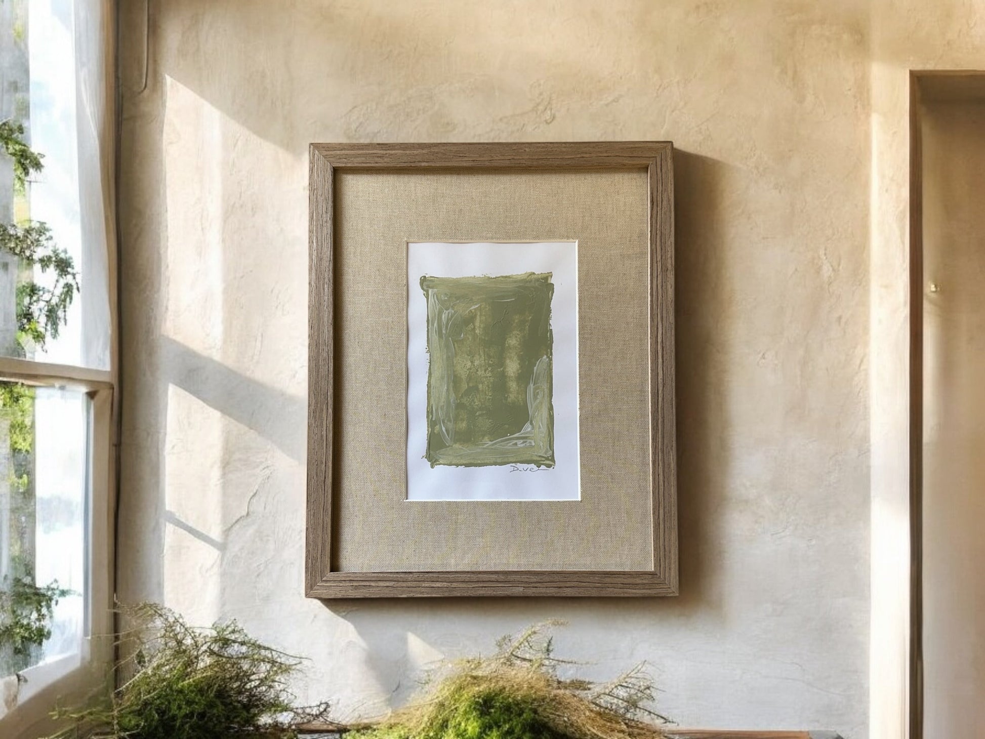 Introduce a touch of sophistication to any space with this stunning mixed media piece. Featuring a custom linen mat and silver wood frame, this 12 x 15" artwork (art number 1169) is a true statement piece. Its unique combination of media creates a mesmerizing mirage that is sure to captivate viewers.
