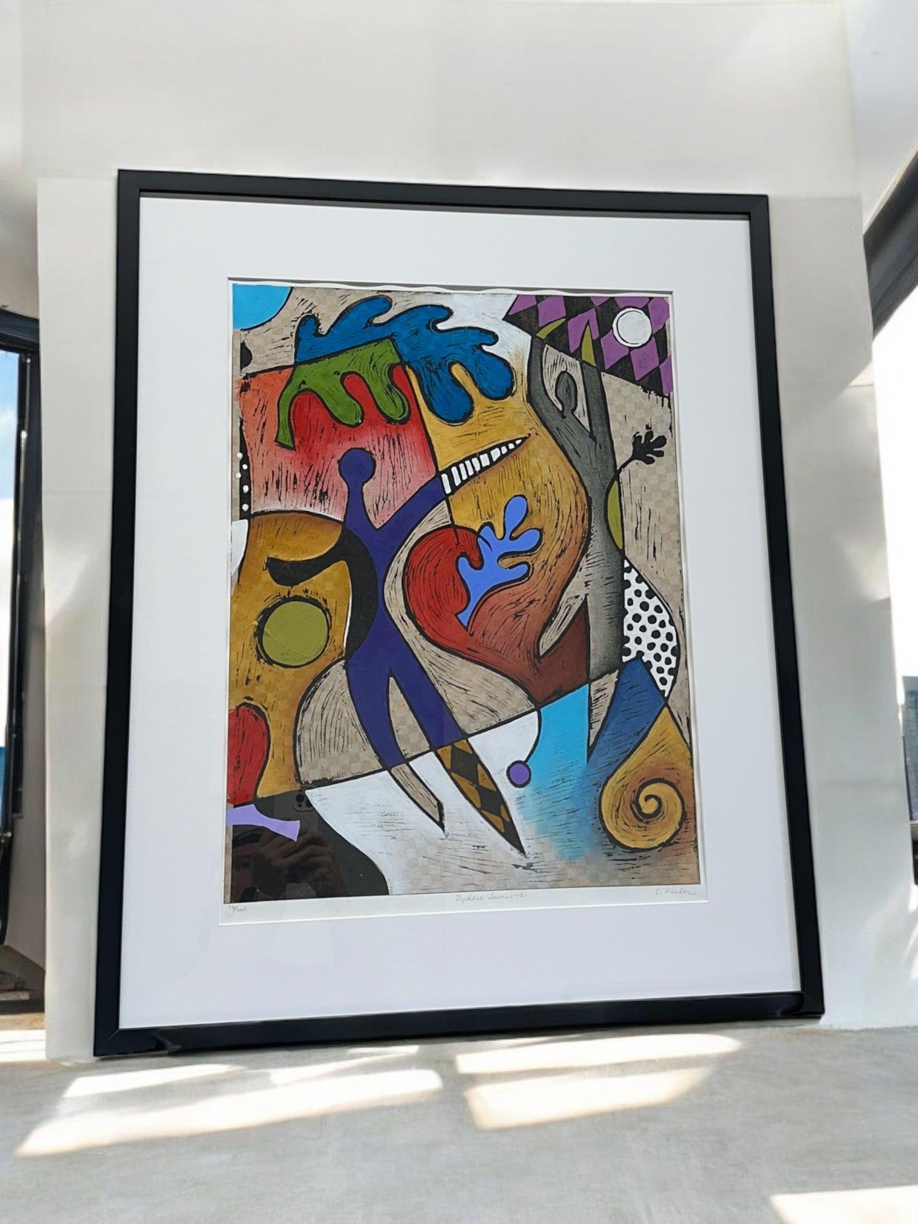 Experience the unique artwork of Kessler Zydeco Swing 2 - mixed media - #1331. This custom framed piece features a signed and numbered print, adding a touch of exclusivity to your collection. Measuring 27 x 33 1/2, it's the perfect addition to any art lover's home.