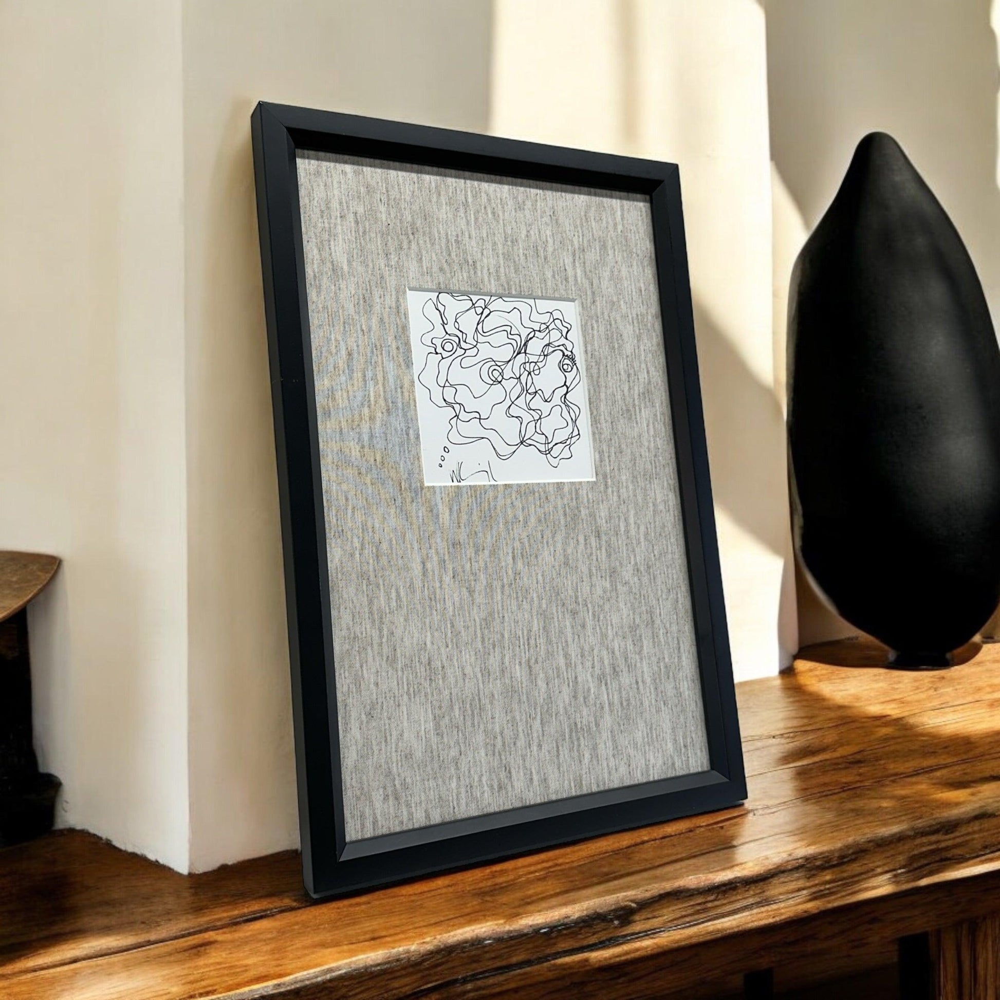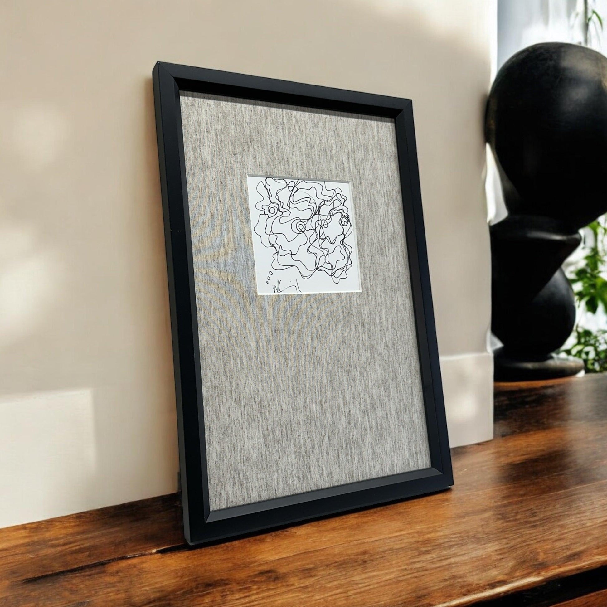Expertly crafted by artist Wayne Cunningham, the Scribble Faces series features unique pen and ink drawings on paper. This particular piece, #1356, measures 12 1/2 x 18 1/2 and comes beautifully framed in a custom frame. Add a touch of artistic flair to any room with this one-of-a-kind piece.