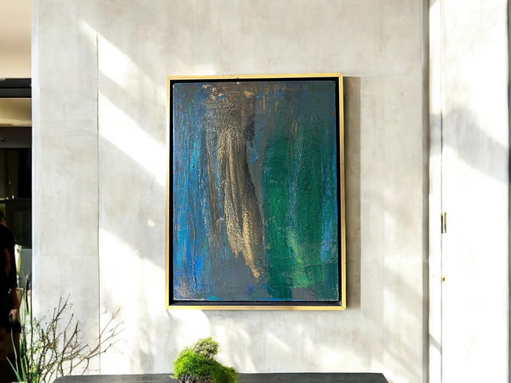 Experience the calming beauty of Serene Echos, a stunning oil and mixed media on canvas art piece by Daniel Buckler. Number 1204 is elegantly presented in a custom floater frame, measuring 19 1/2 x 25 1/2 inches. Bring a sense of tranquility and inspiration to any space with this unique and expertly crafted artwork.