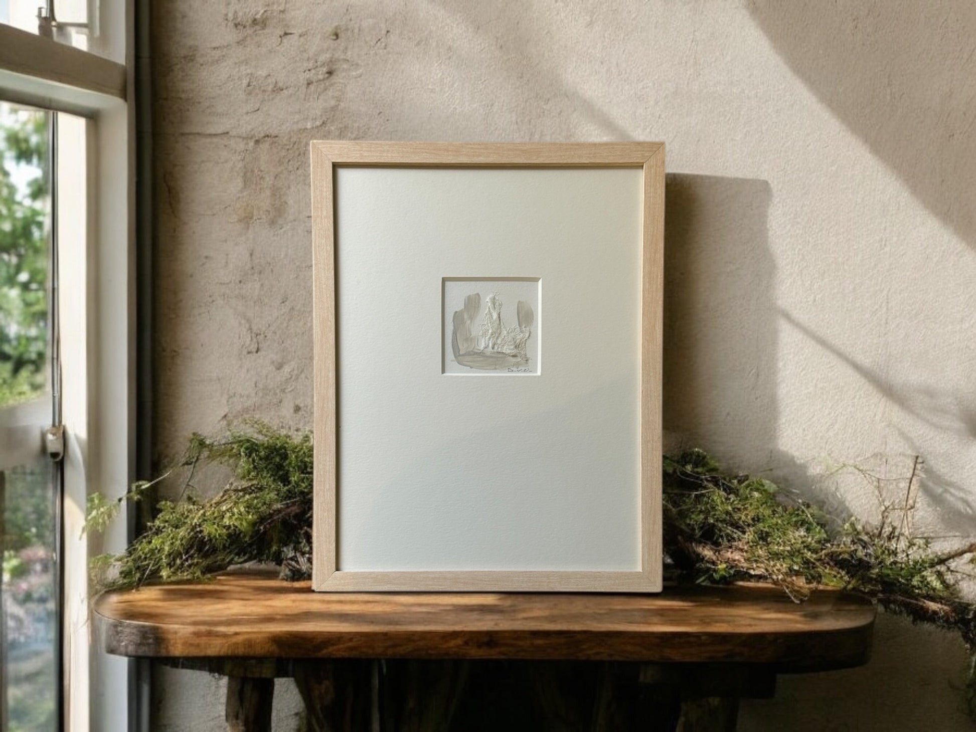 Expertly curated for art lovers, the Texture Moments Series by DVO offers a unique blend of mixed media on artists paper. With a custom frame and measuring at 13 x 17'', this one-of-a-kind piece (number 1118) is sure to elevate any space. Discover the beauty of texture and experience art like never before.