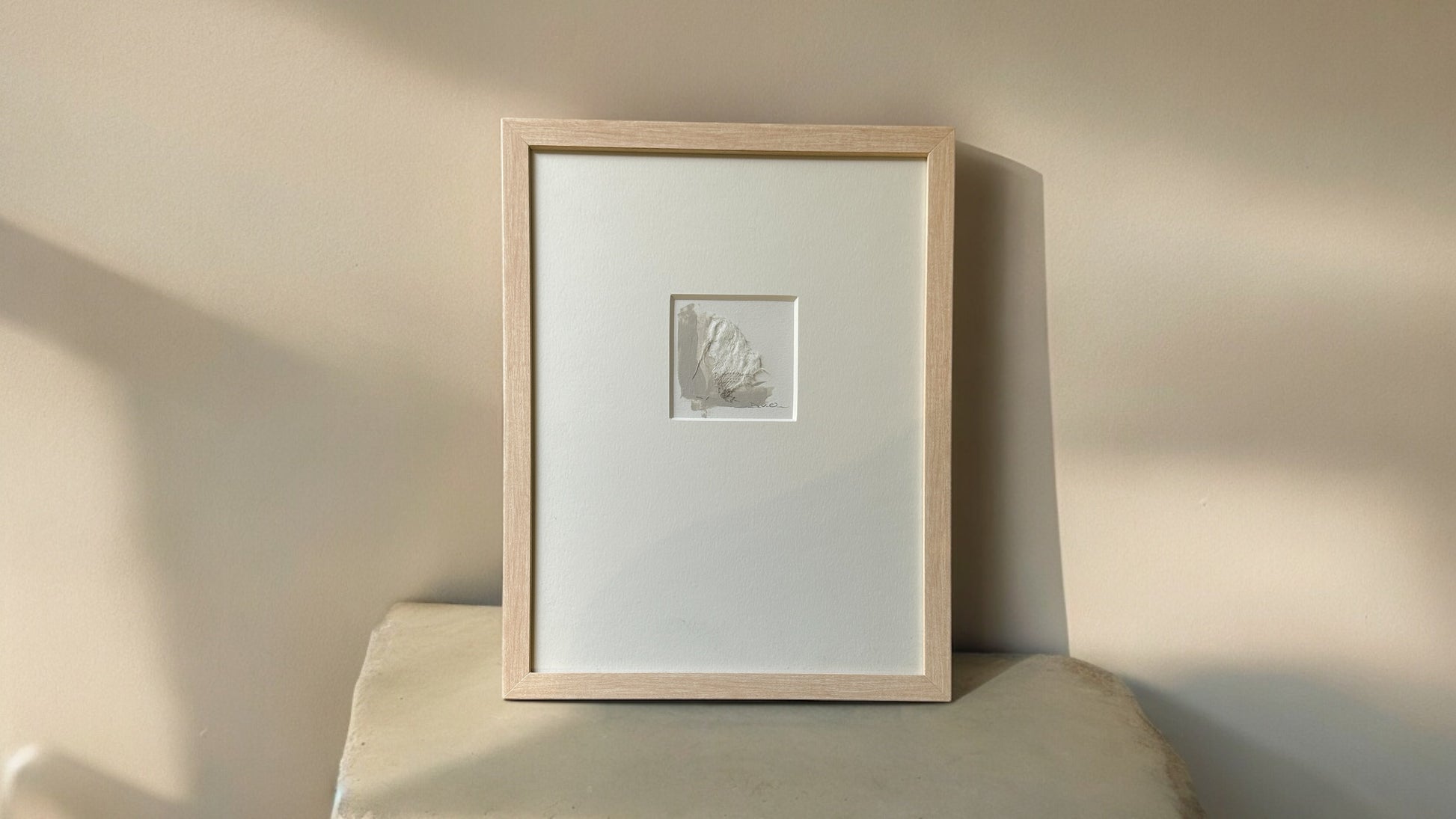 Expertly curated for art lovers, the Texture Moments Series by DVO offers a unique blend of mixed media on artists paper. With a custom frame and measuring at 13 x 17'', this one-of-a-kind piece (number 1119) is sure to elevate any space. Discover the beauty of texture and experience art like never before.