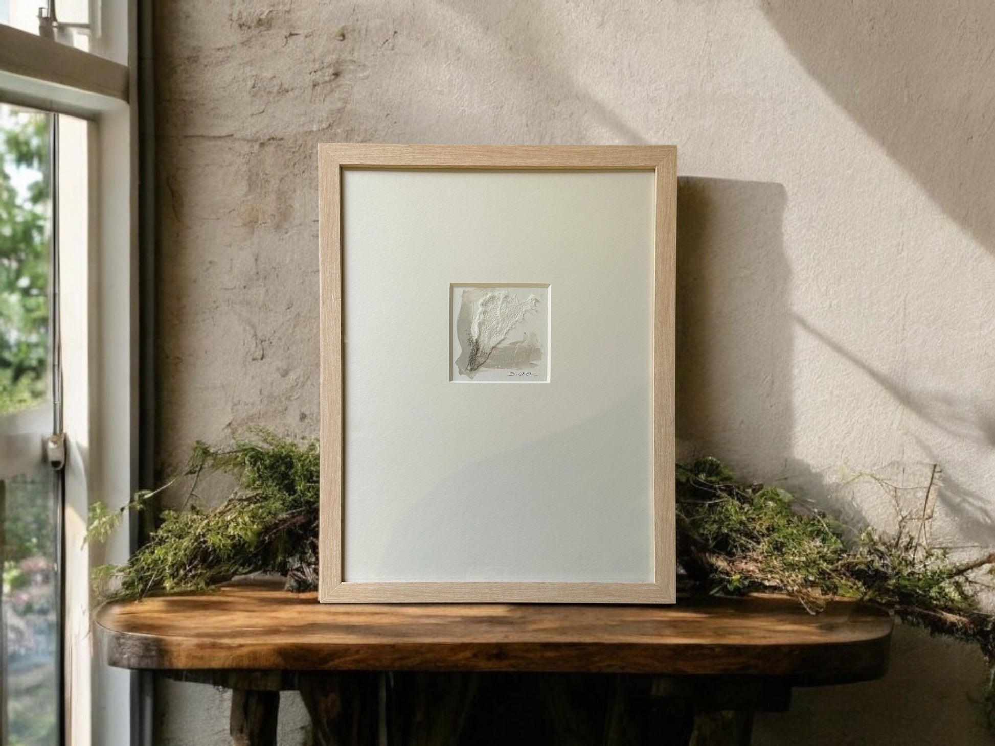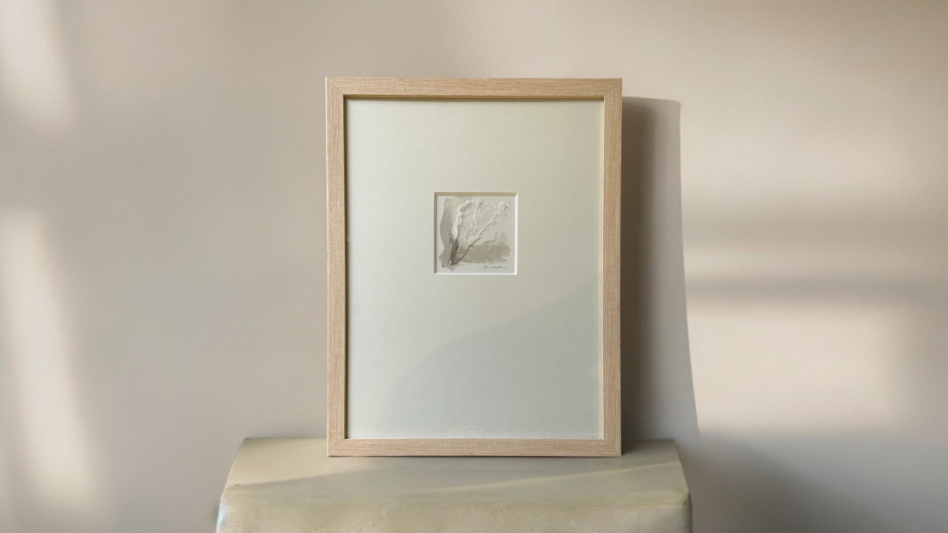 Expertly curated for art lovers, the Texture Moments Series by DVO offers a unique blend of mixed media on artists paper. With a custom frame and measuring at 13 x 17'', this one-of-a-kind piece (number 1120) is sure to elevate any space. Discover the beauty of texture and experience art like never before.