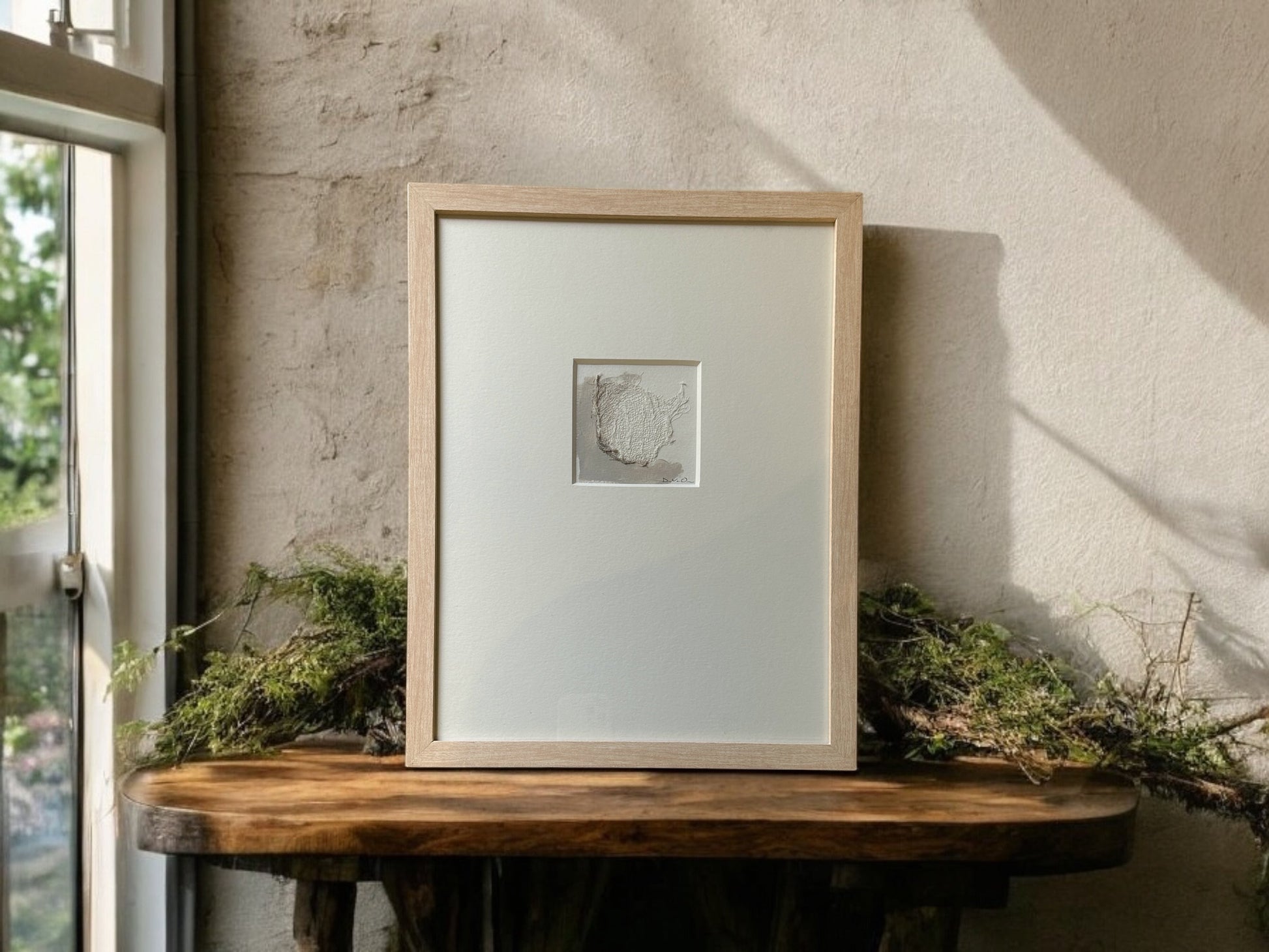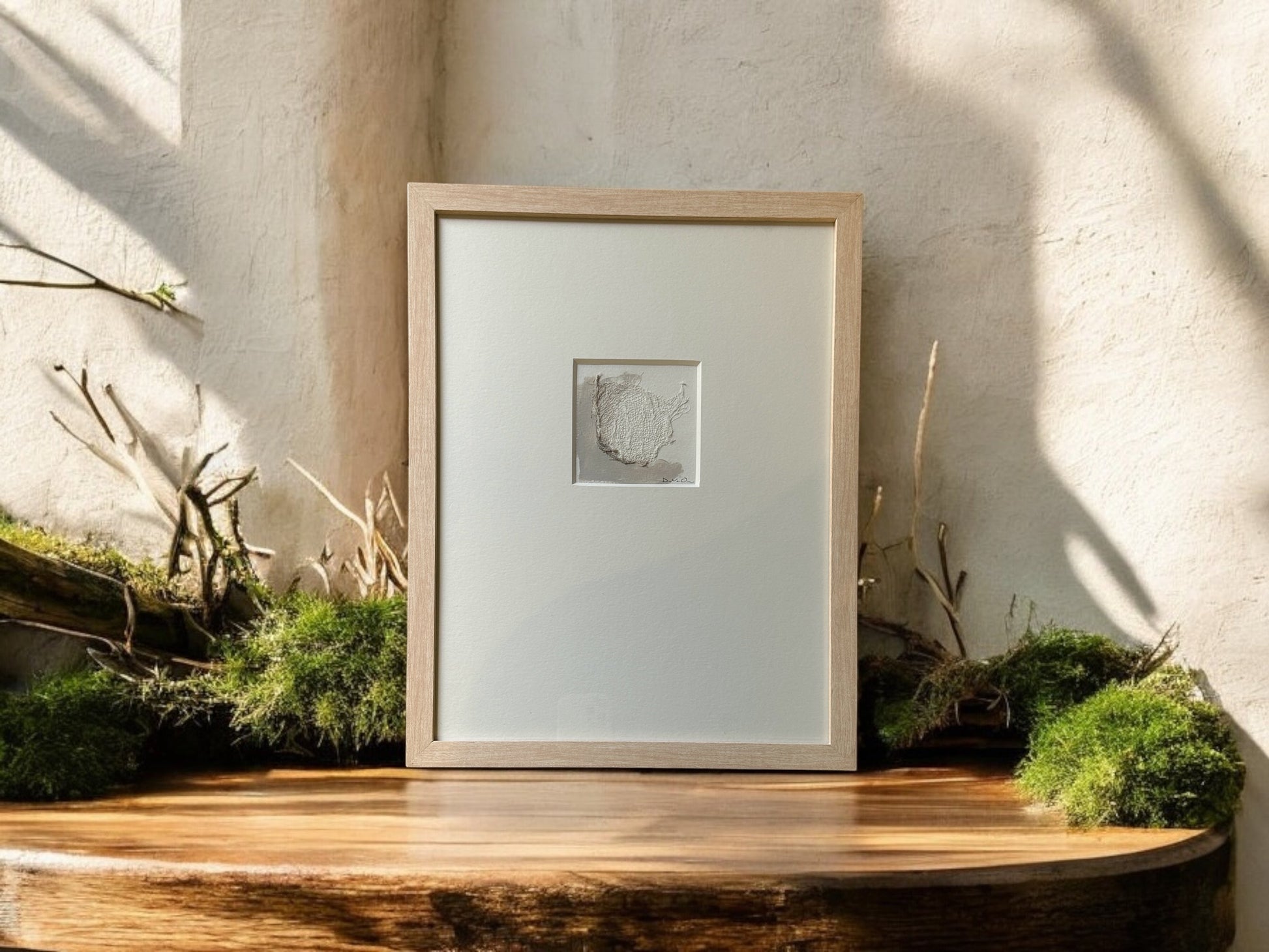 Expertly curated for art lovers, the Texture Moments Series by DVO offers a unique blend of mixed media on artists paper. With a custom frame and measuring at 13 x 17'', this one-of-a-kind piece (number 1121) is sure to elevate any space. Discover the beauty of texture and experience art like never before.