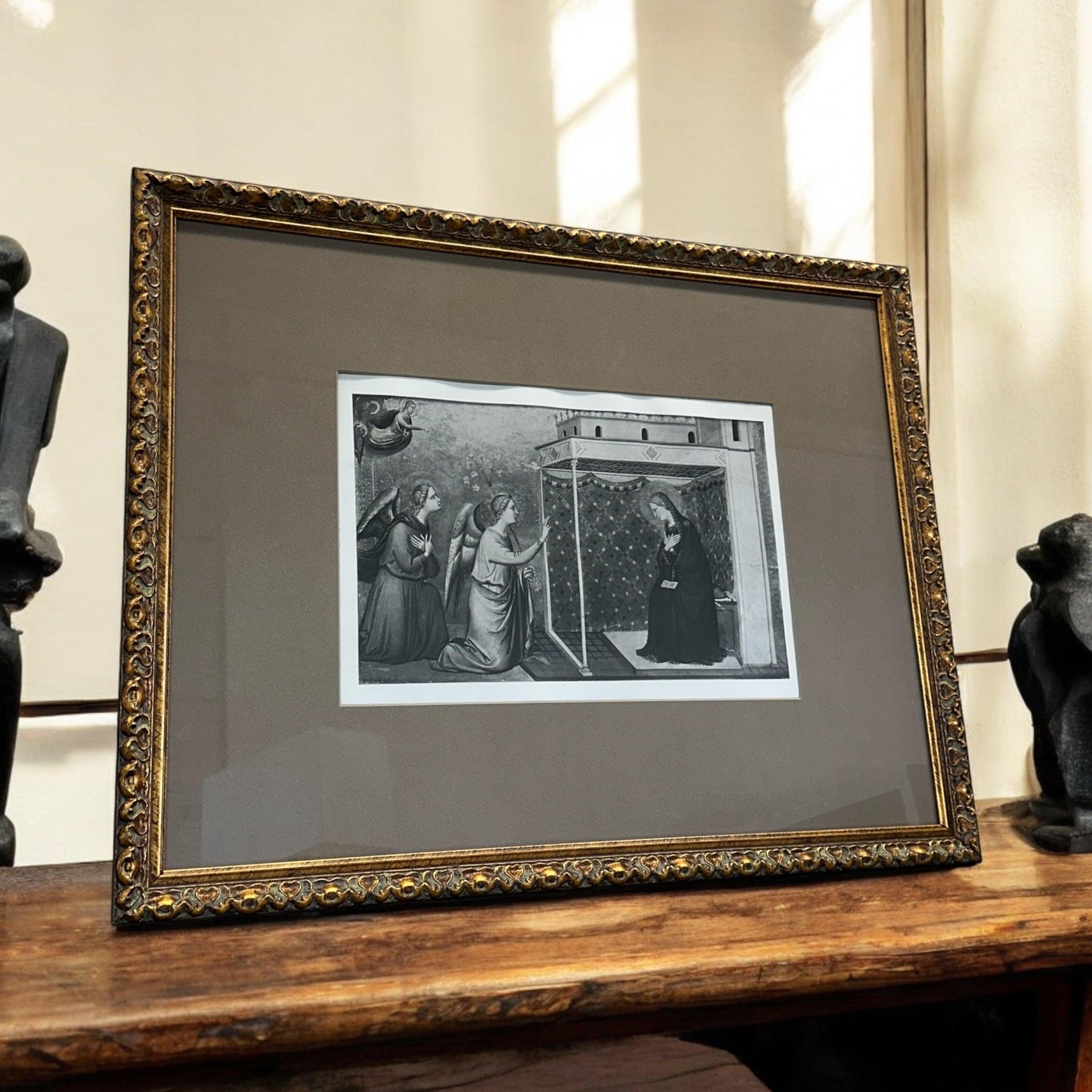 The Virgin - #1383 is a stunning etching, elegantly framed in a custom gold ornate frame measuring 20 x 26". Expertly crafted with intricate detail, this piece will add a touch of sophistication and beauty to any room. Perfect for art lovers and collectors looking for a timeless addition to their collection.
