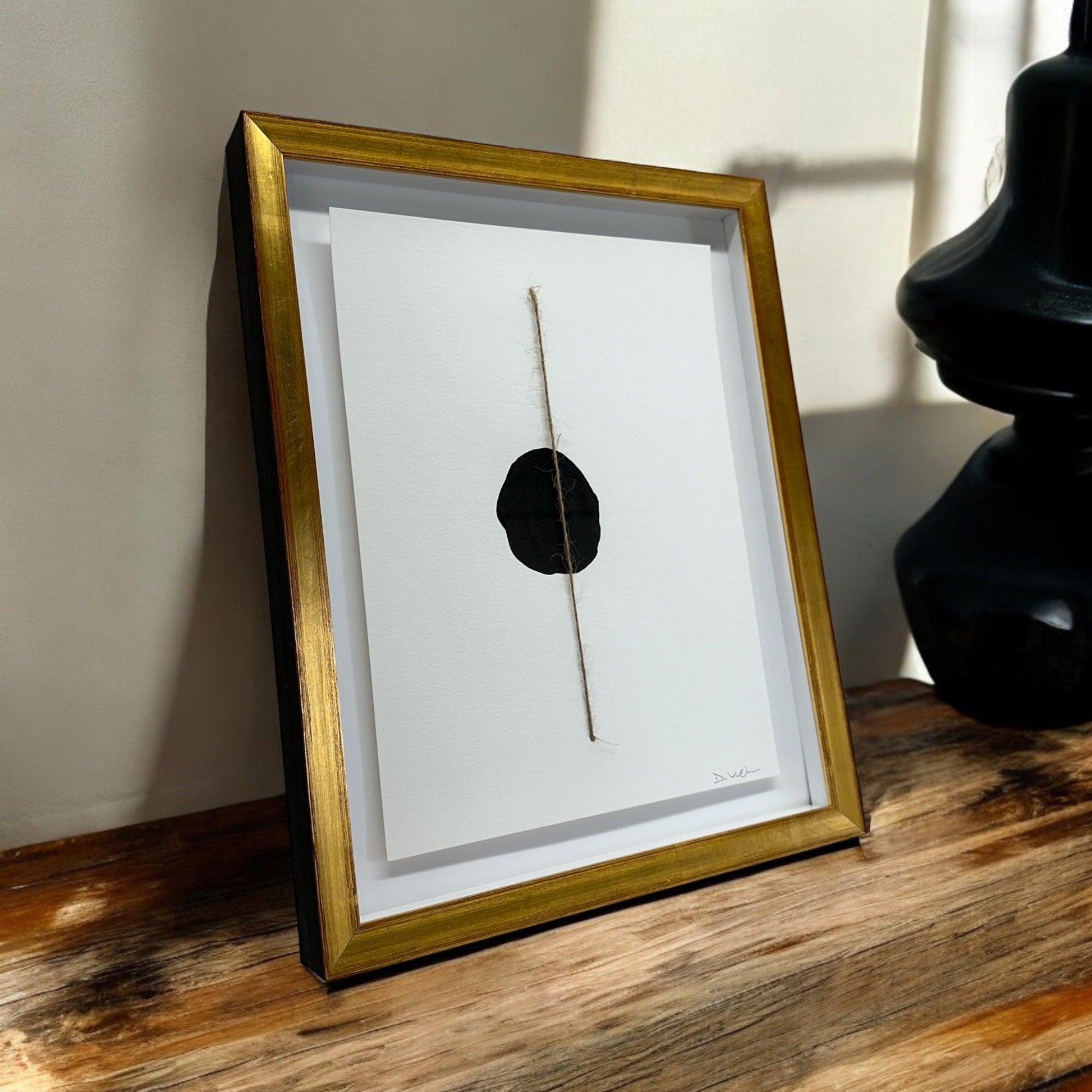 Experience the beauty and versatility of our Thin Line - DVO - #1351. This mixed media piece is delicately crafted with paper and encased in a custom frame, giving it a dimension of 12 x 15 inches. Perfect for any modern or minimalist space, this artwork adds a touch of sophistication to any room.