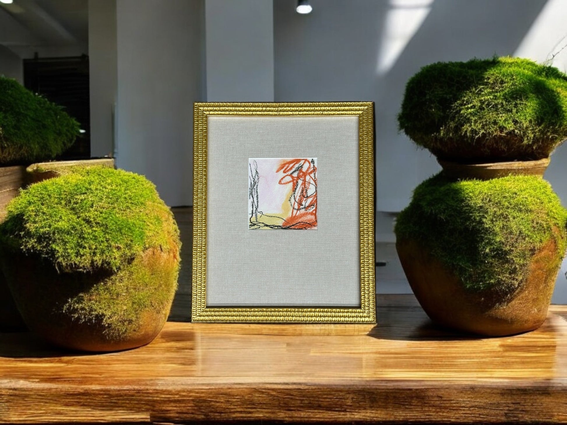 This pastel on paper art piece, professionally placed in a custom linen mat and gilded gold frame, offers a vibrant luster that will enhance any space. Measuring at 9x11'', this unique piece is sure to add an elegant touch to your home or office.