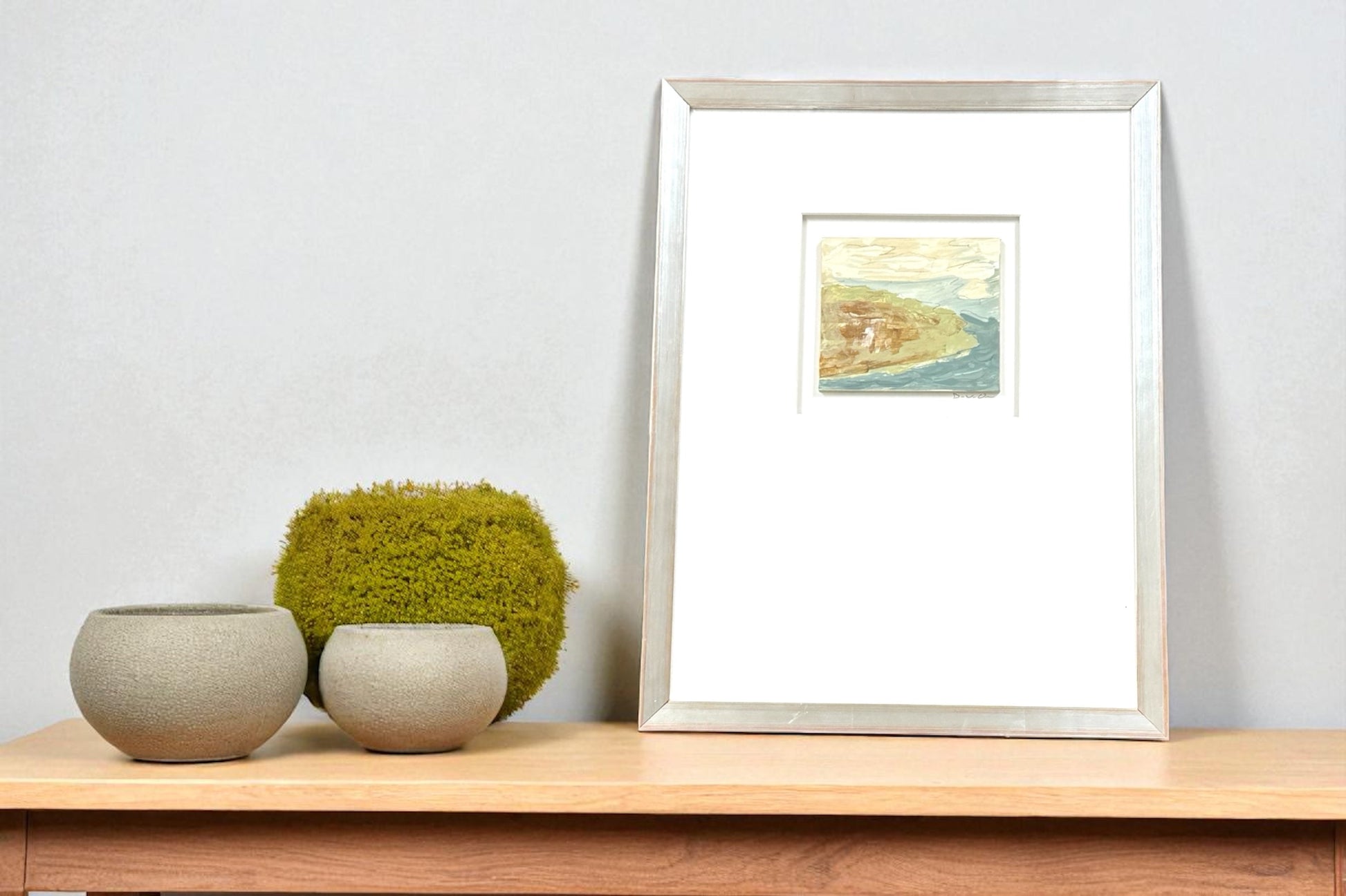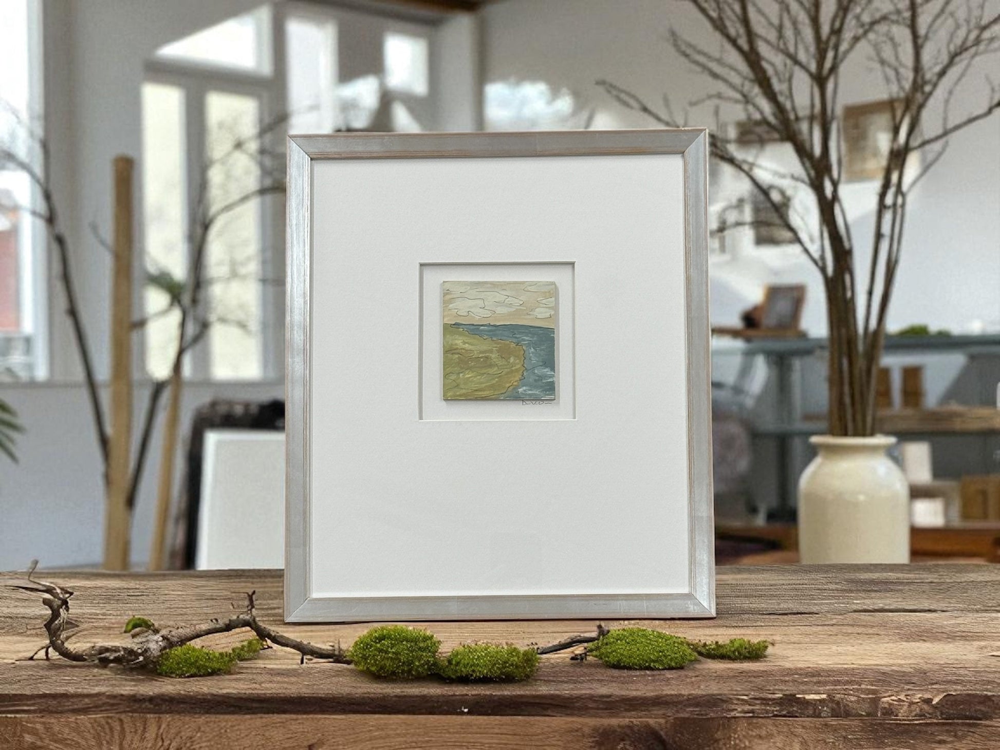 IExperience the beauty of Where Sky Meets Water with this stunning piece of art. With its acrylic on panel medium and custom silver and white wood frame, this artwork enhances any space with its elegant 13x15'' display. Add a touch of sophistication to your home or office.