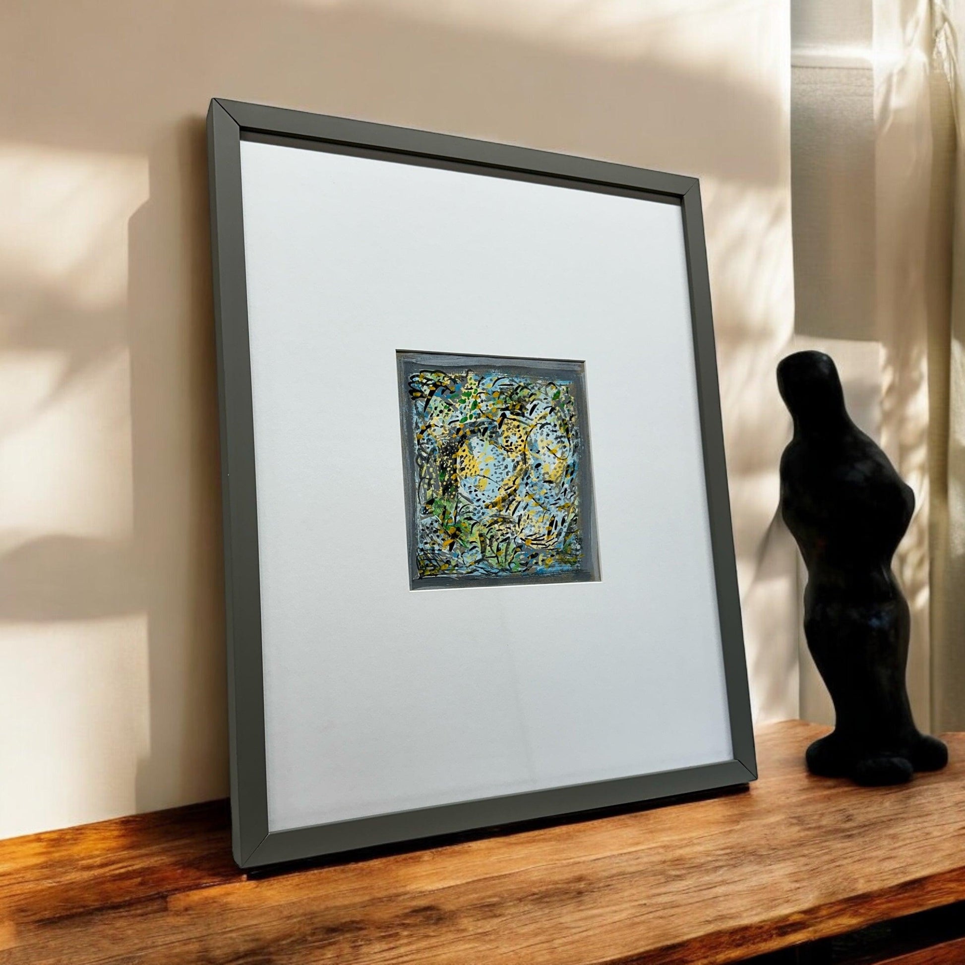 This custom framed mix media piece, part of the Whimsy in Wonderland series, features number 1312. Measuring at 17 x 21", this unique artwork will add a touch of imagination and charm to any room. Bring the magic of Wonderland into your home with this one-of-a-kind piece.