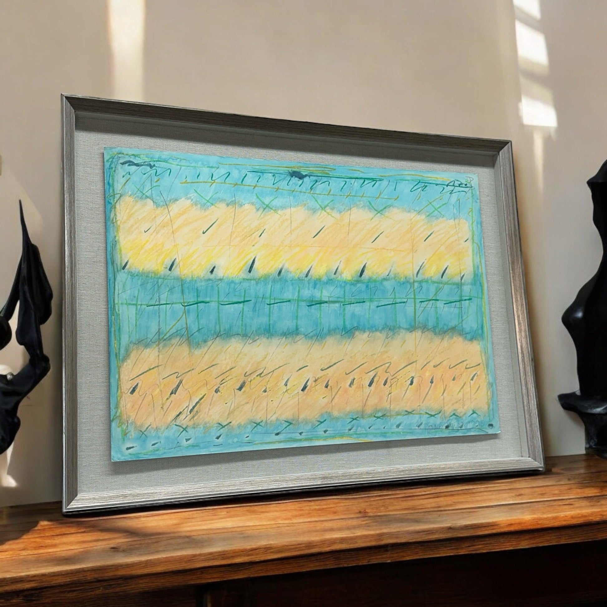 This stunning mixed media piece titled "Whispers of the Wind" features delicate layers of paper, expertly combined to evoke a sense of tranquility and movement. Custom framed and measuring 25 x 33 inches, this one-of-a-kind artwork is the perfect addition to any space.